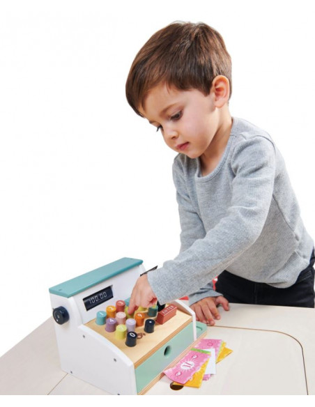 Caisse enregistreuse en bois de la marque Tender Leaf.