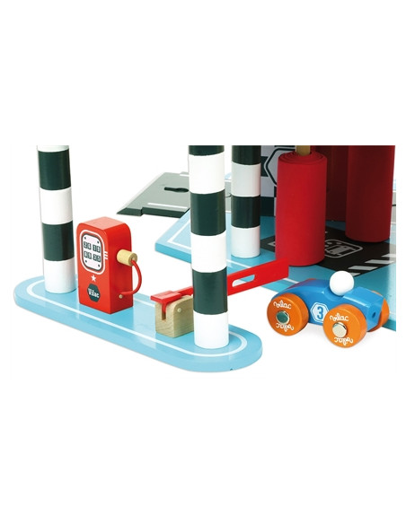 Ce jouet en bois s’adresse aux petit(e)s pilotes à partir de 3 ans. Lors de son développement, votre enfant va apprécier les jeux dits « d’imitation » ou « symboliques », à travers lesquels il reproduira le quotidien des « grands ». Grâce à ces jeux, il va pouvoir stimuler son imagination et créer des scénaris, que les adultes ou les autres enfants pourront enrichir. Avec ce grand garage, votre enfant pourra s’amuser à faire monter et descendre l’ascenseur, laver sa petite voiture grâce aux rouleaux de lavomatic, faire le plein d'essence (verte) et ouvrir la barrière, actionner la grande porte coulissante, faire atterrir son hélicoptère sur le toit, et cerise sur le garage, se lancer sur la rampe pour s'envoler sur le tremplin !