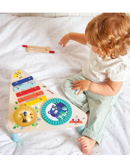 En avant la musique ! Avec cette table musicale en bois, les petits musiciens dès 12 mois vont pouvoir s'éveiller à la musique et aux sons.