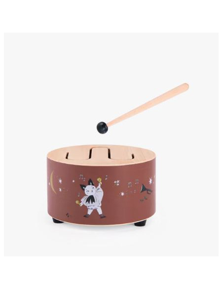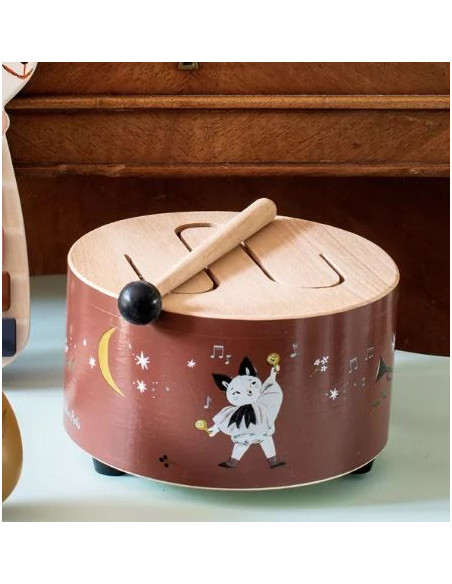 Tambour en bois, tout en rondeur et facile à manipuler.