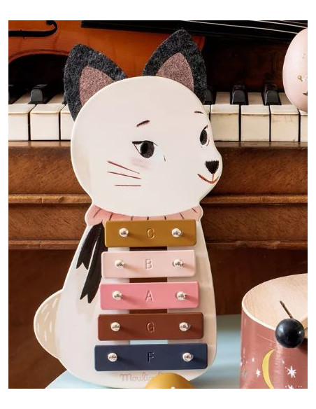 Son socle bois aux formes arrondies est illustré de Plume, de la collection Après la Pluie, avec deux oreilles en feutrine. Développe le rythme, la motricité et l'éveil musical des tout-petits.