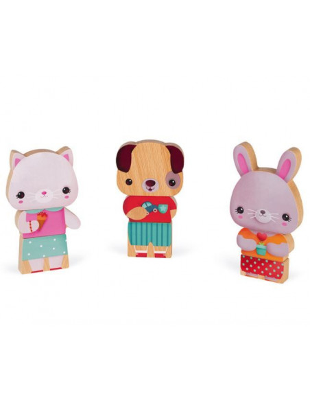 Ces 3 animaux de compagnie sont en trois parties magnétiques. On décompose, on mélange et on reconstitue à l’infini. Un jeu d’association et d’imagination en bois magnétique : avec une face garçon et une face fille.