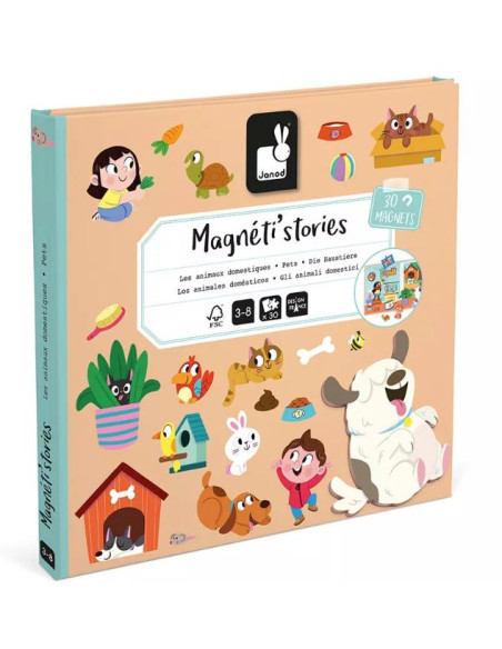 Un monde de petits compagnons à portée de main ! Découvrez notre jeu magnétique sur le thème des animaux de compagnie, spécialement conçu pour les enfants dès 3 ans. C'est un outil idéal pour stimuler l’imagination et la créativité des enfants ! Composé de 30 magnets colorés et d’une planche magnétique illustrée, ce jeu aimanté permet aux enfants de créer leurs propres histoires et scénarios au cœur d'une maison pleine de vie. En créant leurs propres histoires, les enfants développent leur imagination, leur capacité à résoudre des problèmes et leur compréhension du monde. Ils peuvent ainsi s'imaginer donner de la laitue à une tortue, câliner le petit chien sur le canapé ou encore chercher Pamplemousse le chat caché dans la plante ! Ce jeu magnétique est également initiateur d’échanges entre les parents et l’enfant. Une fois la planche illustrée mise à la verticale, votre enfant pourra vous conter toutes les histoires qu'il a imaginées. Enfin, le décor peut facilement se plier, rendant le tout facile à transporter. Que vous soyez en voyage, en visite chez des amis ou simplement à la maison, votre enfant pourra emporter ce jeu partout avec lui. Ce jeu aimanté avec des animaux fait partie de la grande collection des Magnéti'stories, de véritables invitations à l’imagination et la rêverie. Ce jeu magnétique est composé de carton certifié FSC™ ainsi que de matériaux contrôlés.