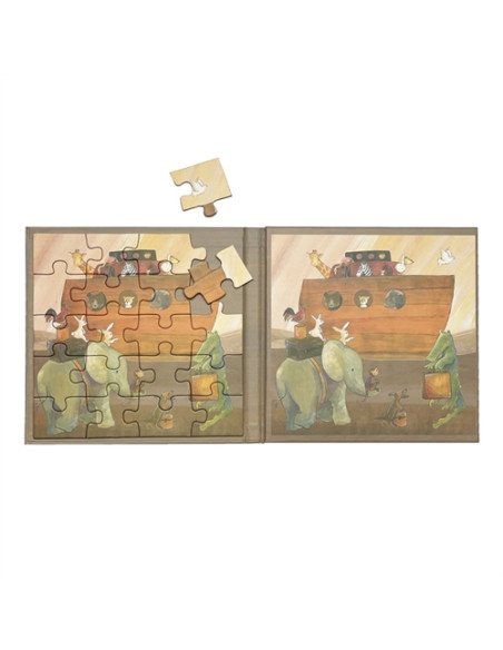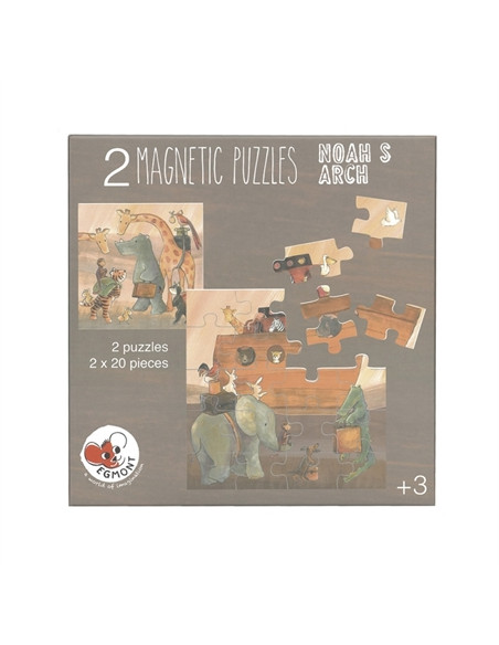 Deux puzzles magnétiques sur le thème de l'Arche de Noé. Idéal pour occuper les enfants en voyage, au restaurant, dans la voiture, le train, l'avion...