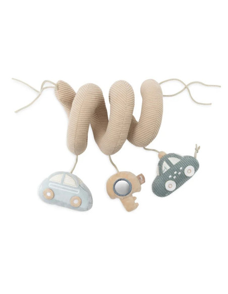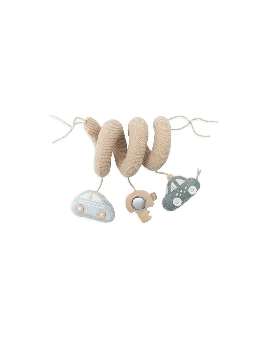 Avec deux joyeuses voitures, une clé pratique et une combinaison de tissu côtelé Biscuit, Cloud Blue et Sea Green, cette spirale est non seulement agréable à regarder, mais aussi à jouer.
