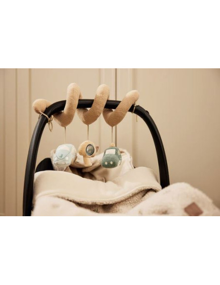 Grâce aux boucles d'attache des deux côtés, vous pouvez facilement attacher la spirale au parc ou au maxi cosi. Trop mignon !