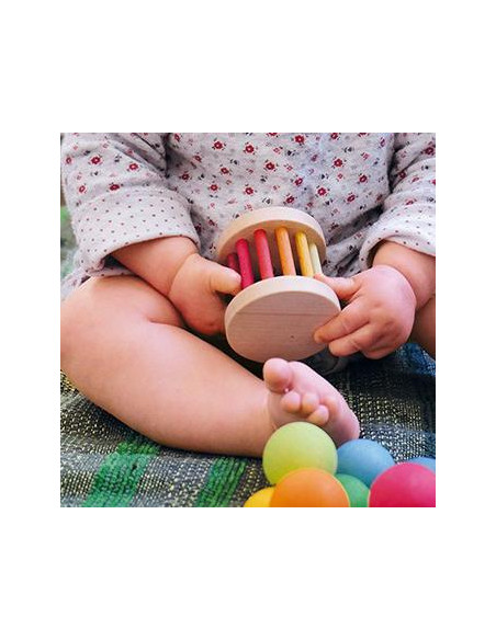 La marque Grimm's produit des jouets en bois naturels et durables. En conséquence, ces jouets ont toujours des marques uniques, car le grain de bois a des structures et des couleurs changeantes qui servent de preuve de ses origines naturelles. Les variations uniques sont la preuve de la qualité du jouet et non d'un défaut.