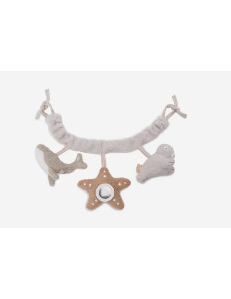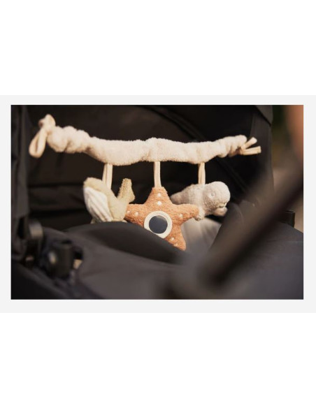 Chaine toute douce de jouets à suspendre au siège coque, par exemple.