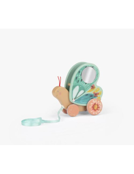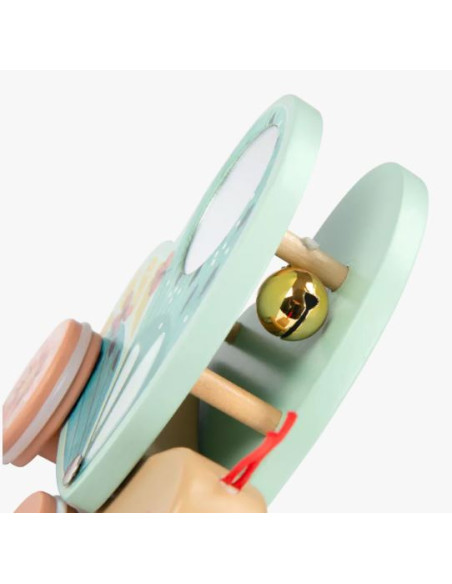 Jouet en bois à tirer de la collection "Trois petits lapins" de la marque Moulin Roty.