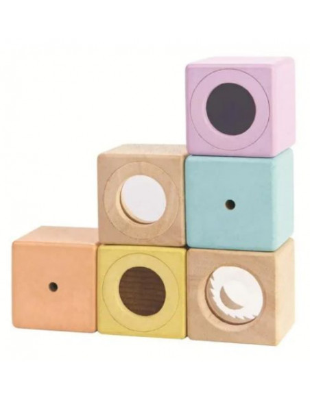 Set de blocs sensoriels en bois de chez Plan Toys