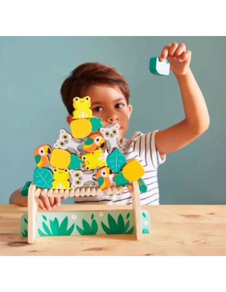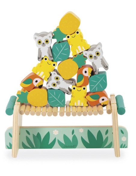 Grenouilles, lémuriens et perroquets, mais aussi des feuilles et des ananas vont devoir trouver l'équilibre dans ce jeu d'adresse haut en couleurs.