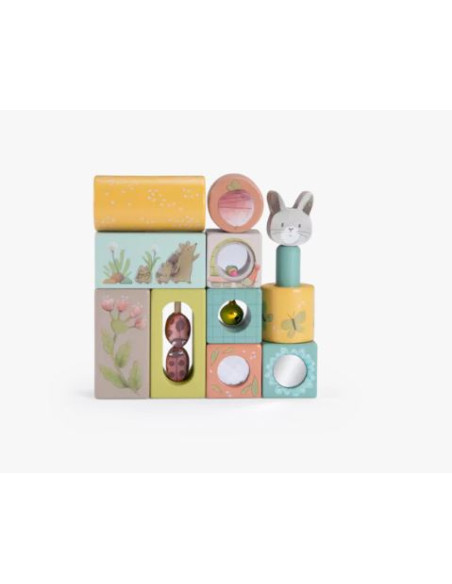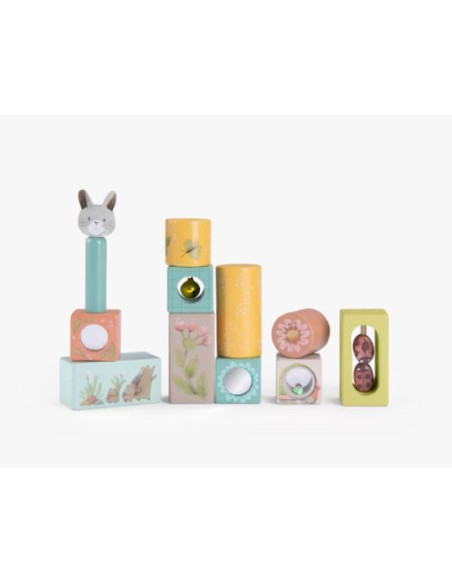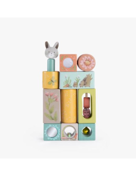Jeu d'activités en bois contenant 11 pièces à empiler joliment illustrées