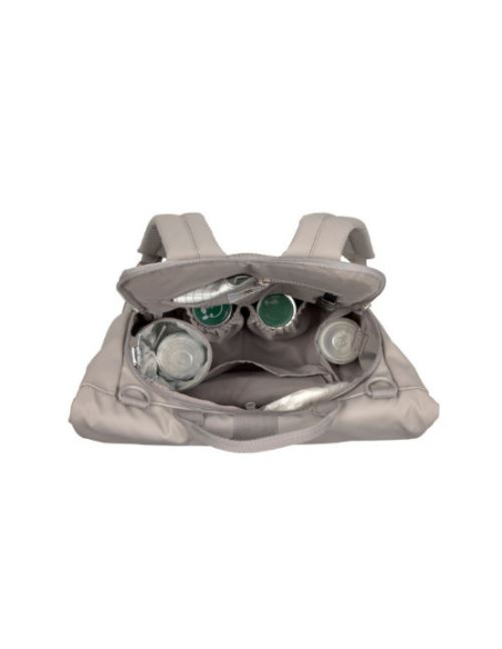 Il est doté d’un matelas à langer hydrofuge, d’un porte-biberon isotherme, d’un support pour petits pots, d’un système d’attache à la poussette et d’une petite poche, le sac permet de transporter tout le nécessaire de voyage.