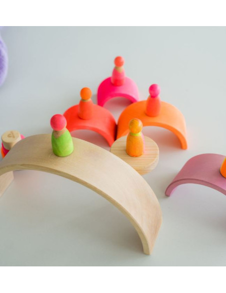 Notre empileur classique est superbe dans n'importe quelle couleur et devait donc bien sûr être inclus dans notre collection Neon ! Il se compose de 10 arches, créant un fort contraste avec des couleurs allant du néon criard aux tons naturels apaisants. Cela en fait non seulement un jouet incroyablement polyvalent pour empiler, construire, trier et jouer librement pour les enfants, mais aussi une superbe pièce maîtresse pour les adultes. 10 pièces Matériaux : bois de tilleul, teinture de couleur à base d'eau non toxique, finition à l'huile végétale non toxique.