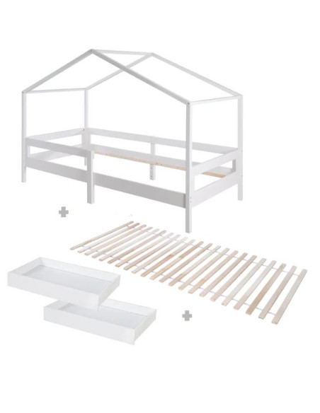 Lit Montessori pour enfant avec 2 tiroirs et sommier - Bois blanc