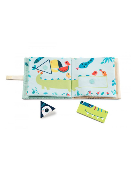 Comprend une pochette avec les formes. Il faut reconstituer les animaux en trouvant la bonne forme et en l'accrochant au bon endroit grâce aux velcros.