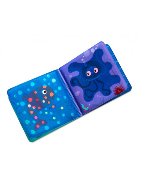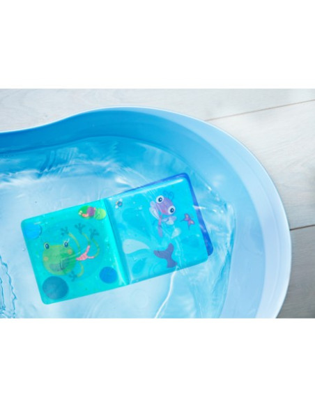Livre de bain magique . Hors de l'eau les personnages sont cachés mais dès que le livre est dans l'eau, les personnages apparaissent.