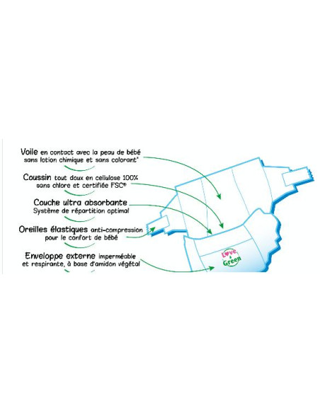 – Plus naturelles que les langes jetables classiques : près de 50% de matières naturelles et biodégradables.