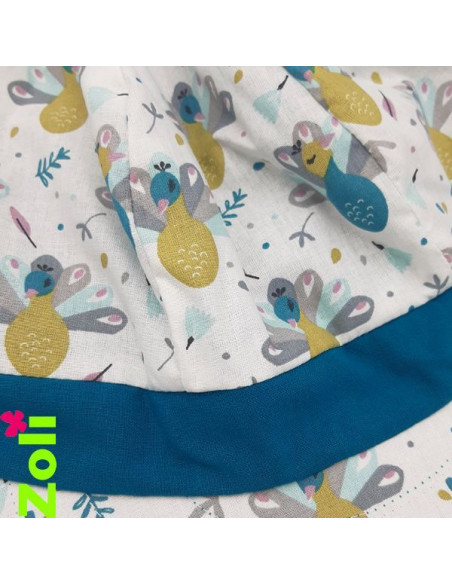 Un joli chapeau en coton, qui s'adapte à la morphologie de bébé : grâce au réglage du tour de tête, vous reserrez ou deserrez le chapeau pour l'ajuster au périmètre crânien de l'enfant.