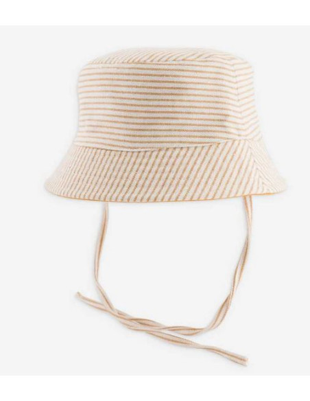 Motif marinière écru et ocre au recto, jaune ocre uni au verso.