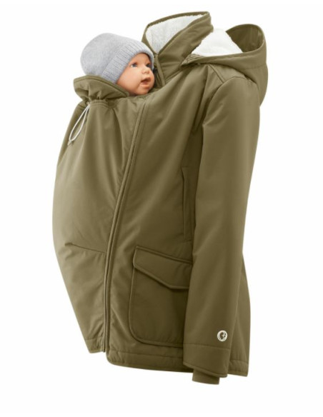 Veste d'hiver douce et résistante aux intempéries pour tous qui maintient bébé et son porteur bien au chaud.