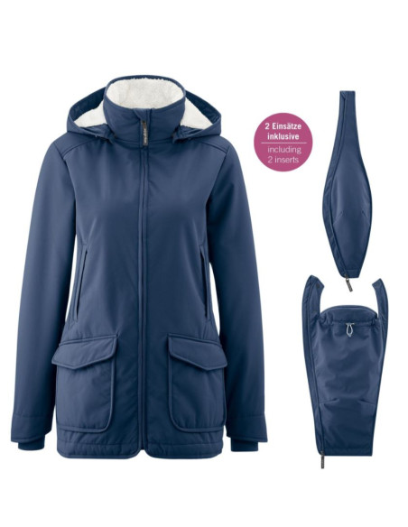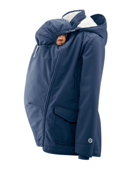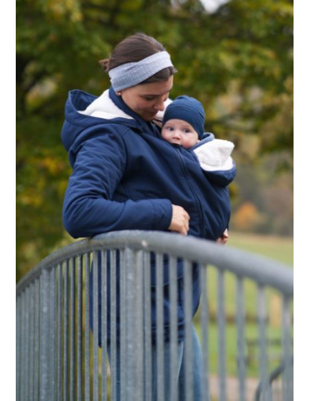 Veste de portage pour femme, teddy intérieur, softshell extérieur pour un effet coupe-vent et coupe-pluie.