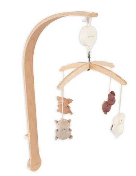Ces animaux colorés et doux, réalisés dans des couleurs neutres, bougent au rythme de la musique grâce au mobile en bois, idéal pour rendre la chambre de votre bébé encore plus accueillante.