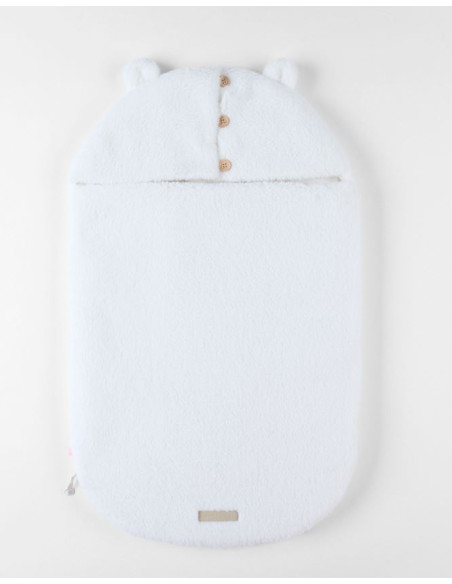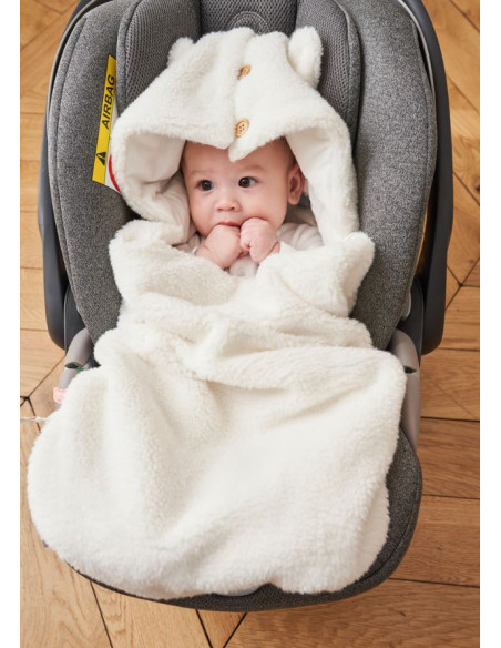 Ce nid d'ange, en sherpa écru, est parfait pour la sortie de la maternité. Conçu spécifiquement pour s'adapter aux nacelles ou sièges-auto du groupe 0, il offrira confort et sécurité à bébé.
