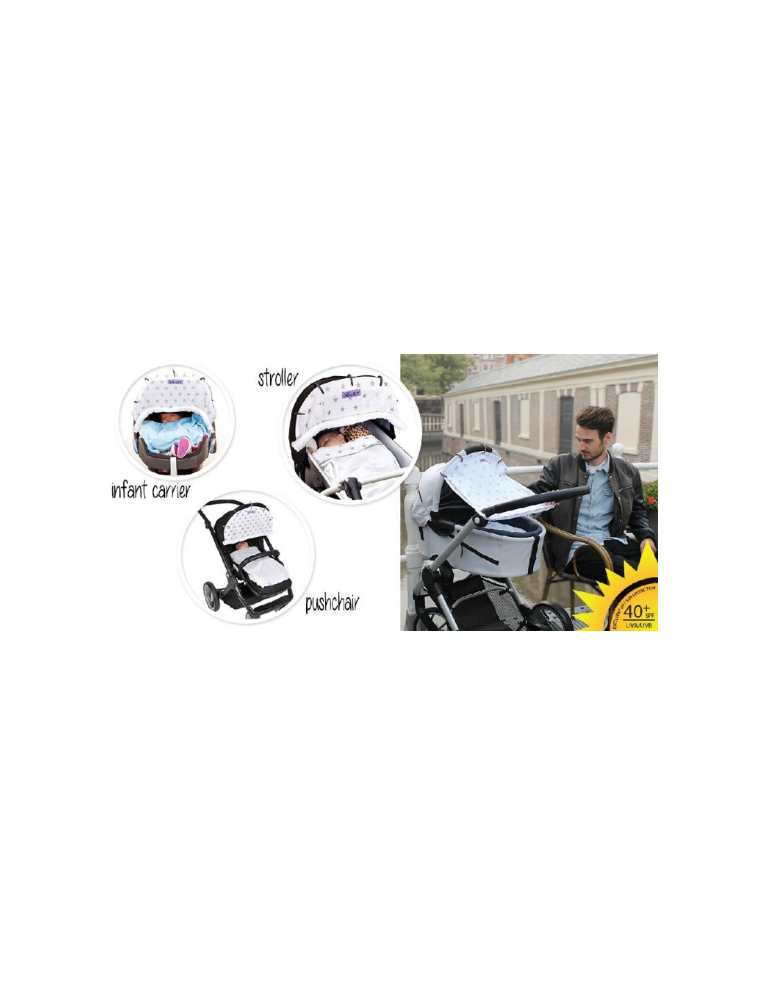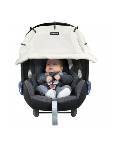 Avec la capote au-dessus du siège-auto, de la nacelle et de la poussette, Dooky éloignera les rayons de soleil du visage de Bébé!