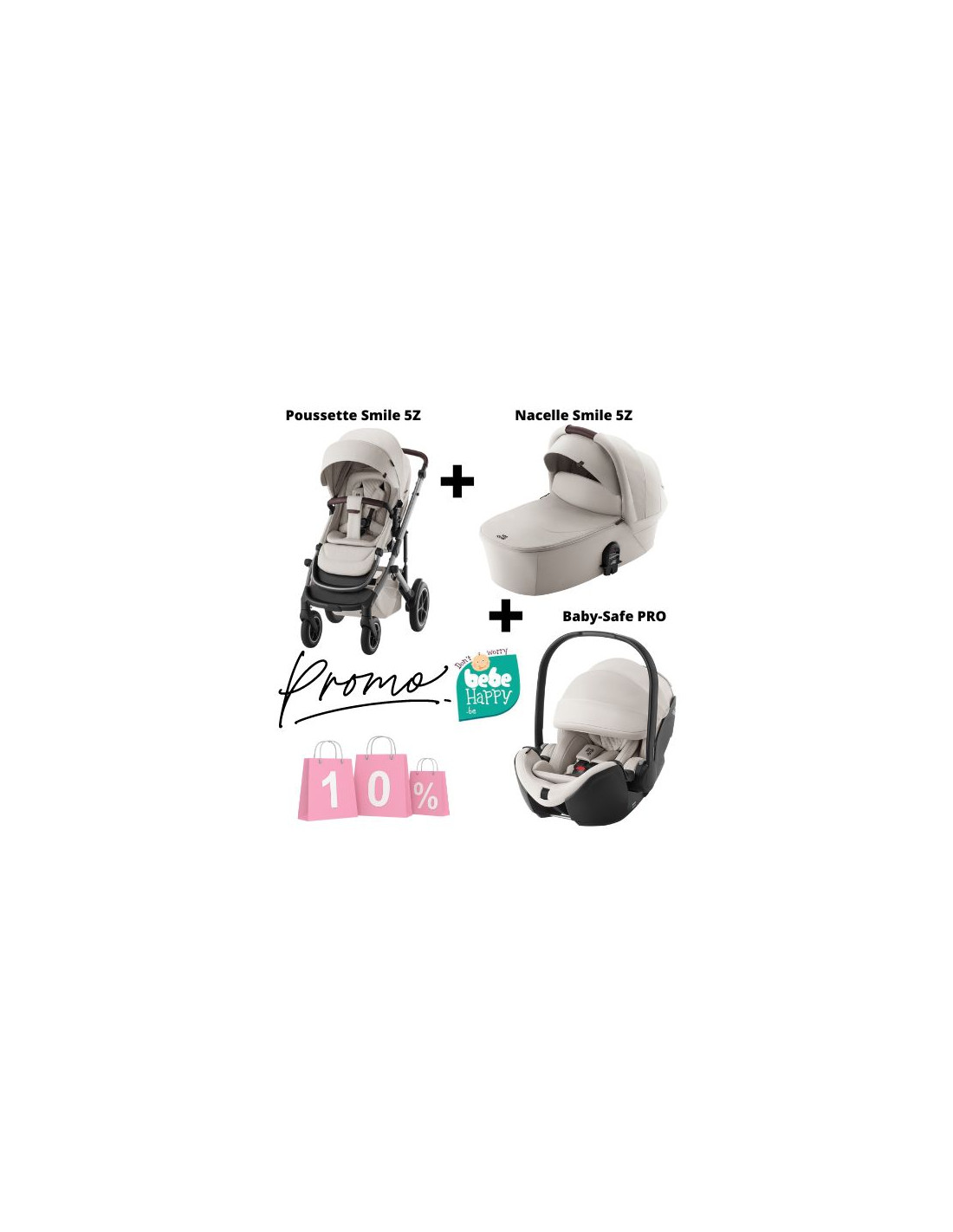 Pack trio composé d'une poussette Smile 5Z, d'une nacelle Smile 5Z et du siège coque Baby-Safe PRO.