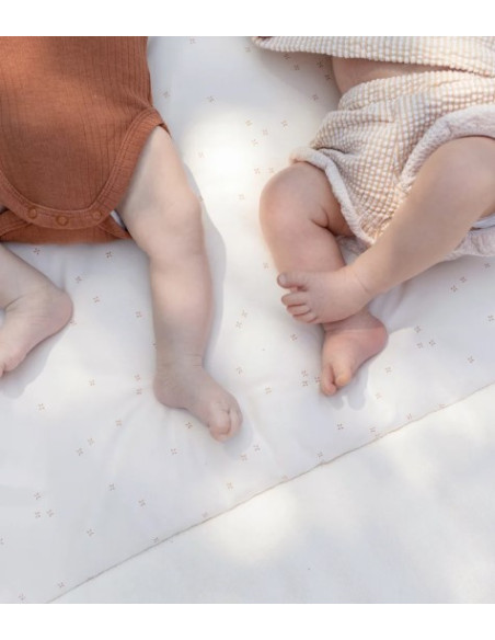 Ce tapis de parc réversible en pady jersey et bambou est un indispensable pour l'éveil, le confort et la sécurité de bébé!