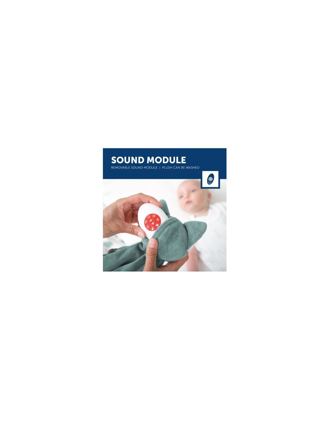 La peluche est équipé d'un système de fixation velcro et se fixe donc sur de nombreux supports. Possibilité d'y accrocher la tétine.