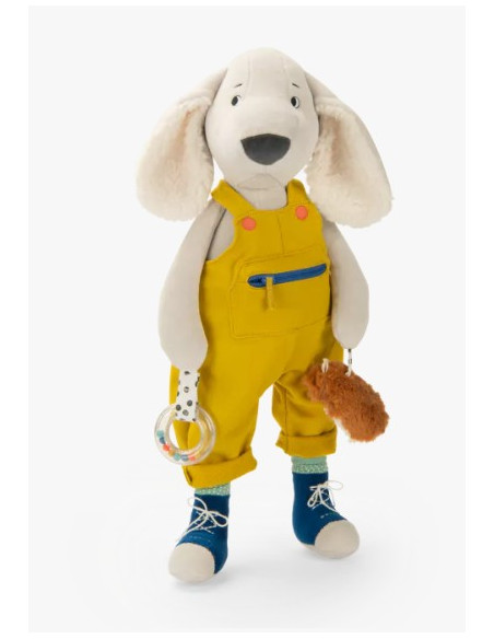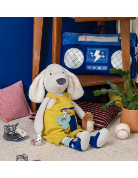 Pilou le chien malicieux n'attend que les les tout-petits pour jouer avec ses nombreuses activités: anneau à billes colorées, grelots, étiquette à saisir, anneau de dentition et même le chouette cacahuète à câliner!