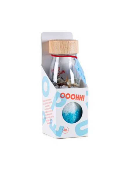 Bouteille sensorielle Spy sur l'Arctique. Amusez-vous à chercher les animaux des régions polaires cachés derrière une épaisse couche de glace. Lorsque le soleil traverse la bouteille, les couleurs de la glace se révèlent.