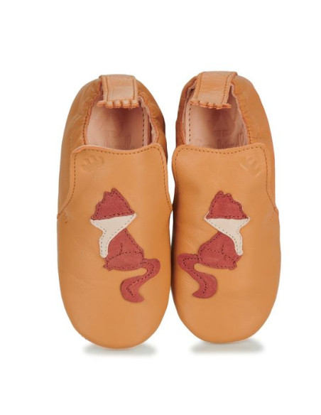 Chausson en cuir pour bébé, idéal pour finir les petites tenues, tiens bien à la cheville et permet d'éviter les pieds nus... Cette vesrion comprend également un patin souple anti dérapant facilitant l'apprentissage de la marche.