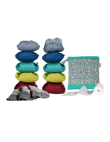 Ce pack contient 10 couches Pop'in V2 de taille unique + 3 booster de nuit, 80 feuilles de protection et un sac de transport.