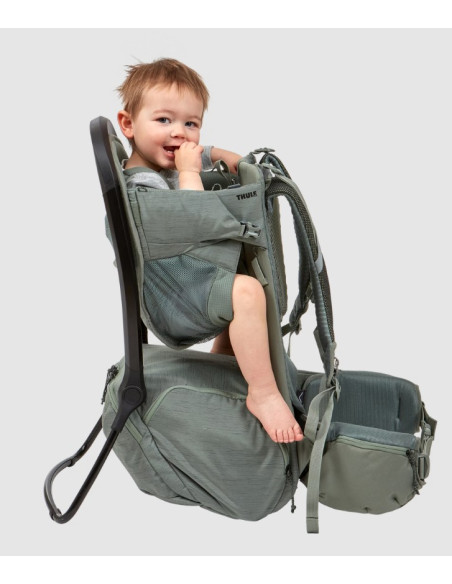 Un porte-bébé de randonnée avec un siège lavable en machine qui fournit une structure sous la jambe pour un maximum de confort pour toutes les aventures. Coloris: agave.