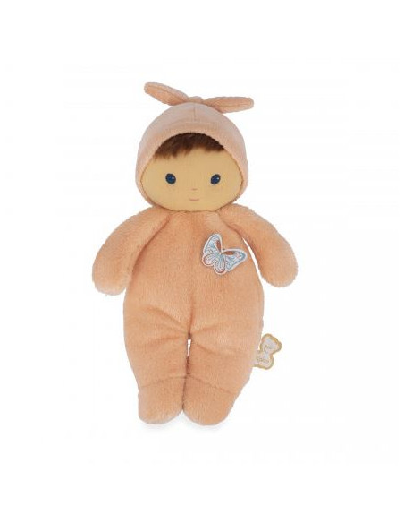 Ce délicat poupon châtain de 24 cm se distingue par son corps couleur pêche et ses yeux bleus lumineux.