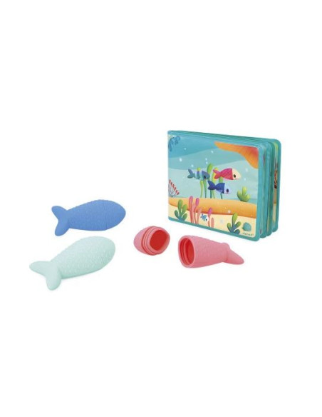 Livre de bain accompagné de 3 gicleurs poissons