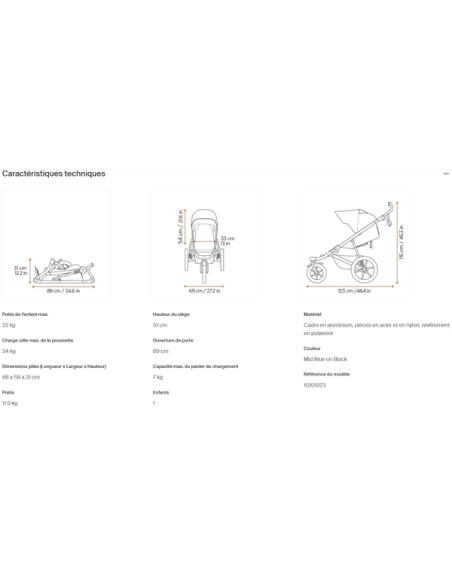 Poussette Thule Urban Glide 3 châssis noir - Mid Blue
