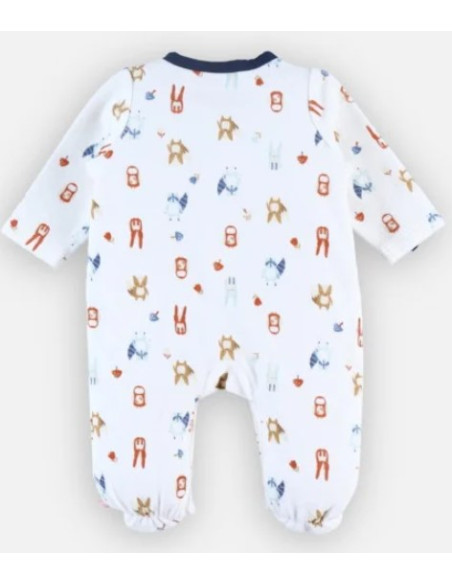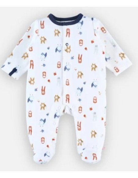 Pyjama dors-bien velour - Animaux Ecru Bleu - 1M
