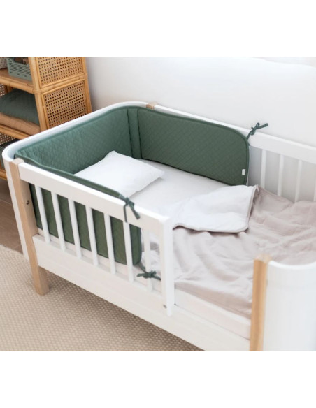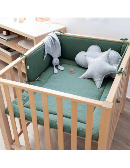 A la fois demi tour de parc ou tour de lit, il est le complément indispensable à l'habillage du parc et du lit. Bébé pourra s’éveiller en toute sécurité, sans risquer de se cogner contre les barreaux. Grâce aux nouettes, il s’attache facilement en toute sécurité et permet une bonne circulation de l’air.