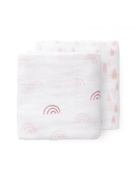 Un indispensable pour bébé: ce lot de 2 tétras en mousseline de coton bio tombe toujours bien à point! Divers motifs et coloris.