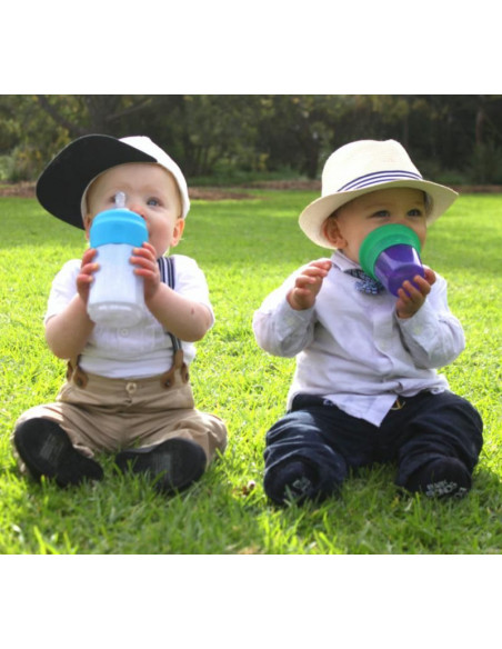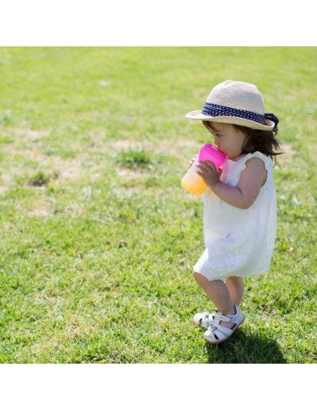 La paille est lestée pour suivre le liquide, permettant aux tout-petits de boire de n'importe quel angle.