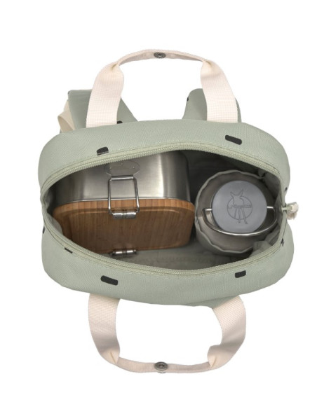 Le compartiment principal du sac à dos, spacieux, offre suffisamment de place pour y glisser des vêtements de rechange, le goûter, les fruits et autres snacks.