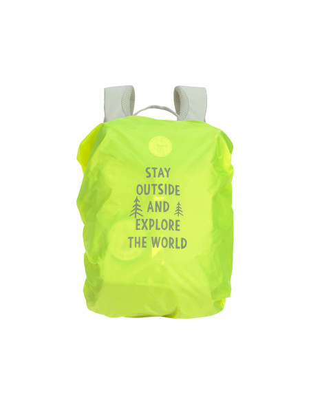 Ce sac à dos pour enfants Outdoor 9 L Sunny Explorer en matière déperlante est équipé d'une housse de pluie et d'un tapis de sol.
