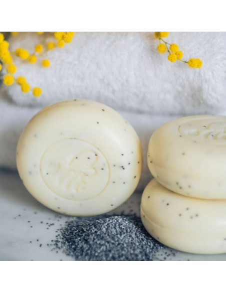 Ce savon aux graines de pavot nettoie tout en exfoliant en douceur les cellules mortes et les impuretés. Le miel hydrate et nourrit la peau. Idéal aussi bien pour le visage que pour le corps.