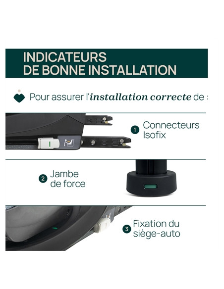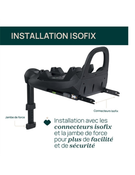 Equipée de connecteurs Isofix et d'une jambe de support pour une installation rapide et sûre.
