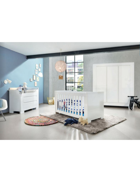 La chambre pour bébé "Sky" contient un lit évolutif, une commode à langer et une garde-robe 2 portes !