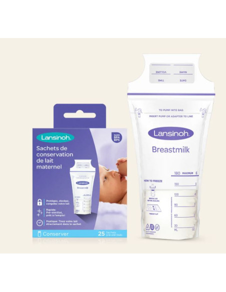 Encore plus pratique : Vous avez un tire-lait Lansinoh ? Alors vous pouvez directement tirer votre lait dans ces sachets de conservation de lait maternel de la même marque !